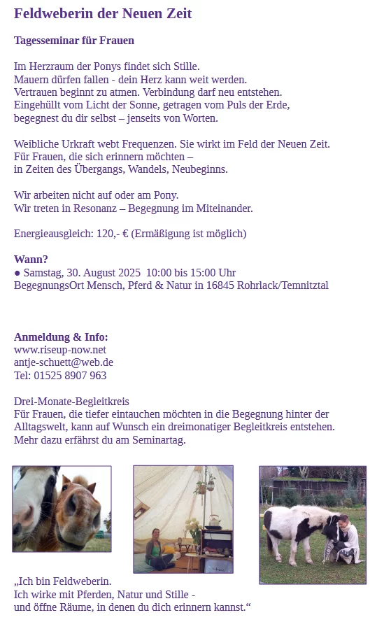 Am Samstag treffen wir uns bei den Pferden, zelebrieren das Ankommen und starten dann in die Begegnung.